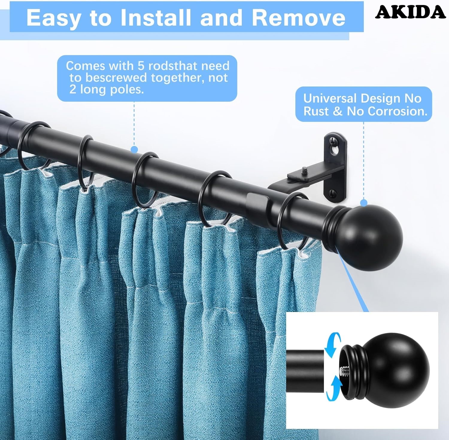 Elevate your home decor with the AKIDA Curtain Rods for Windows, designed for versatility, durability, and ease of use. These adjustable curtain rods are the perfect solution for a wide range of window treatments, combining functionality with a sleek design.