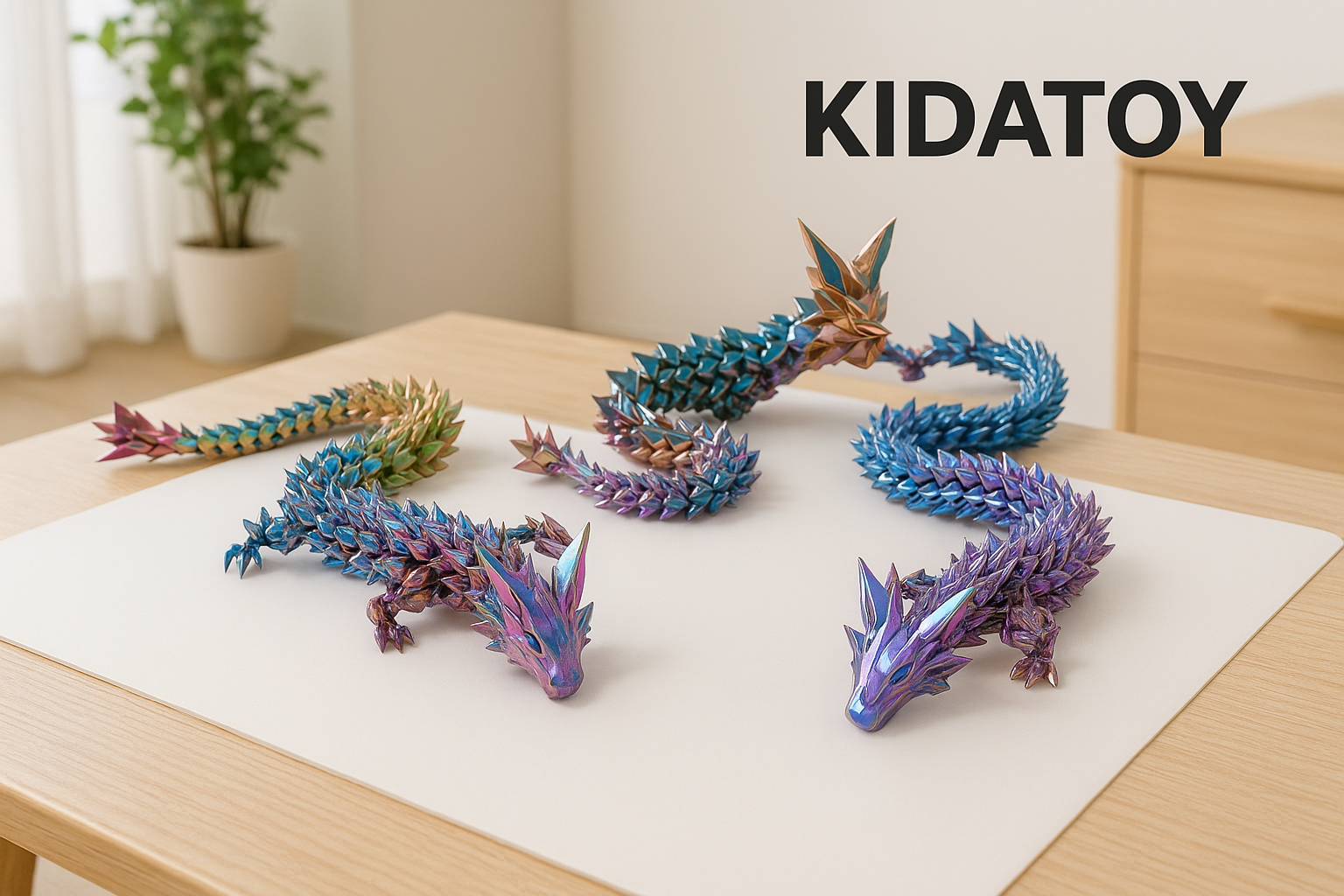 The KIDATOY Toy Model 3D Printed Dragon is a stunning articulated dragon that adds a touch of magic to any space. Made using advanced 3D printing technology, this crystal-like dragon features movable joints, allowing for dynamic poses and play. It serves not only as a fun fidget toy but also as a unique piece of decor for your home or office. Perfect for those who appreciate art and fantasy, this dragon makes a great desk accessory that can inspire creativity and spark conversation!